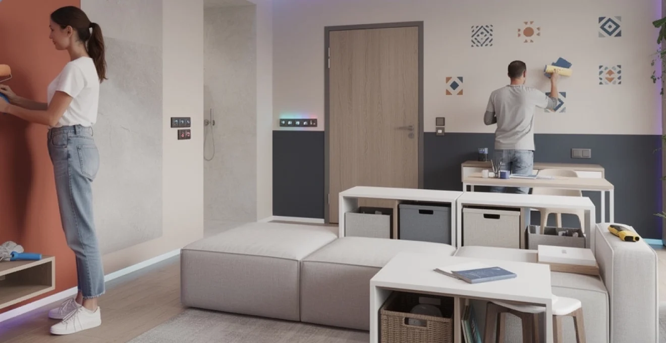 Réaménagement fonctionnel avec mobilier modulaire et solutions de rangement